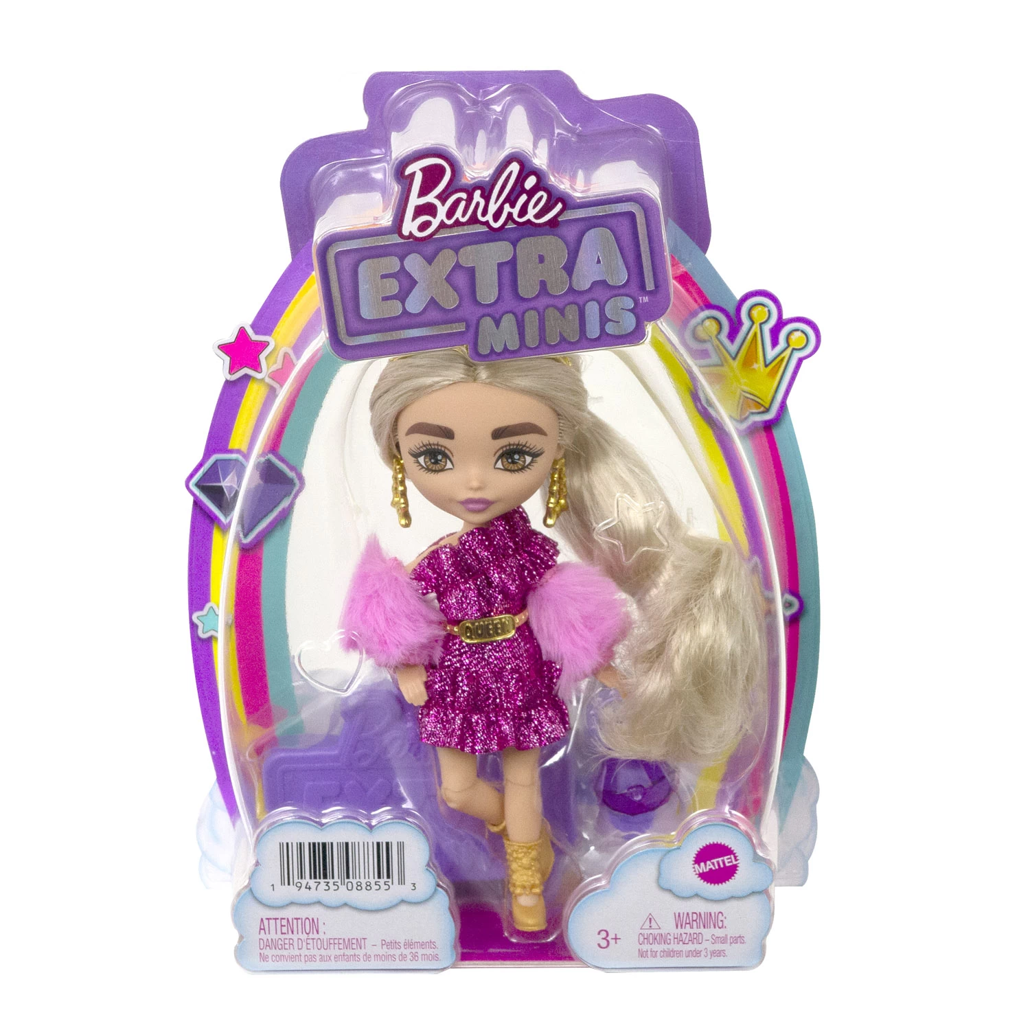 Barbie Extra Minis Gouden Kroon. In een rode jurk, met haar blonde haar en gouden tiara ziet de extra gearticuleerde mini eruit als een prinses. 5 accessoires en 1 basis zijn inbegrepen. Formaat ca. 13 cm. Geschikt voor kinderen vanaf 3 jaar.