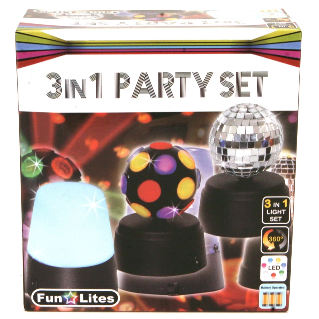 Met deze gave partyset kun jij je huis omtoveren tot een echte disco! Met deze set creëer je de leukste lichteffecten terwijl iedereen aan het dansen is. Iedereen zal de discobol, de spiegelbol en het politielicht geweldig vinden!