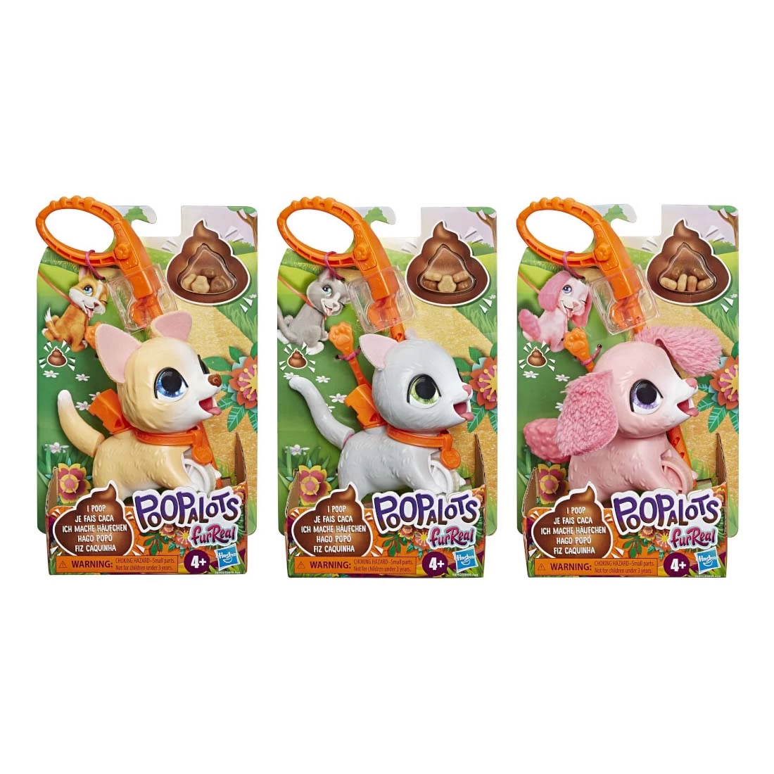 Kinderen kunnen echt lopen met de Fur Real Poopalots Lil Wags Kleinde Dieren. Ze kunnen het dier aanlijnen, wat van de meegeleverde snacks geven en ermee gaan wandelen. Tijdens het wandelen kunnen ze de staart omlaag drukken, om het dier te laten ‘poepen’, en vervolgens kan de ‘poep’ worden opgepakt met het schepje. Er kan met meerdere dieren tegelijk worden gewandeld dankzij het koppelsysteem. Elke set bevat een Poopalots dier, riem, handvat, 6 snoepjes, een schepje en instructies. Geschikt vanaf 4 jaar.
