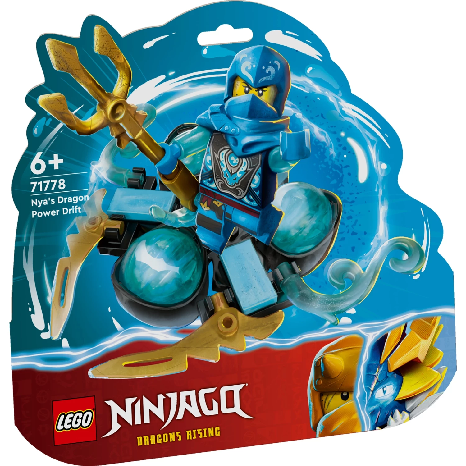 • Ninjaprijs – de stevige speelset wordt ook geleverd met een gouden drakenenergiekern in een kom die drakenkracht Nya moet zien te bemachtigen en 2 waterobstakels