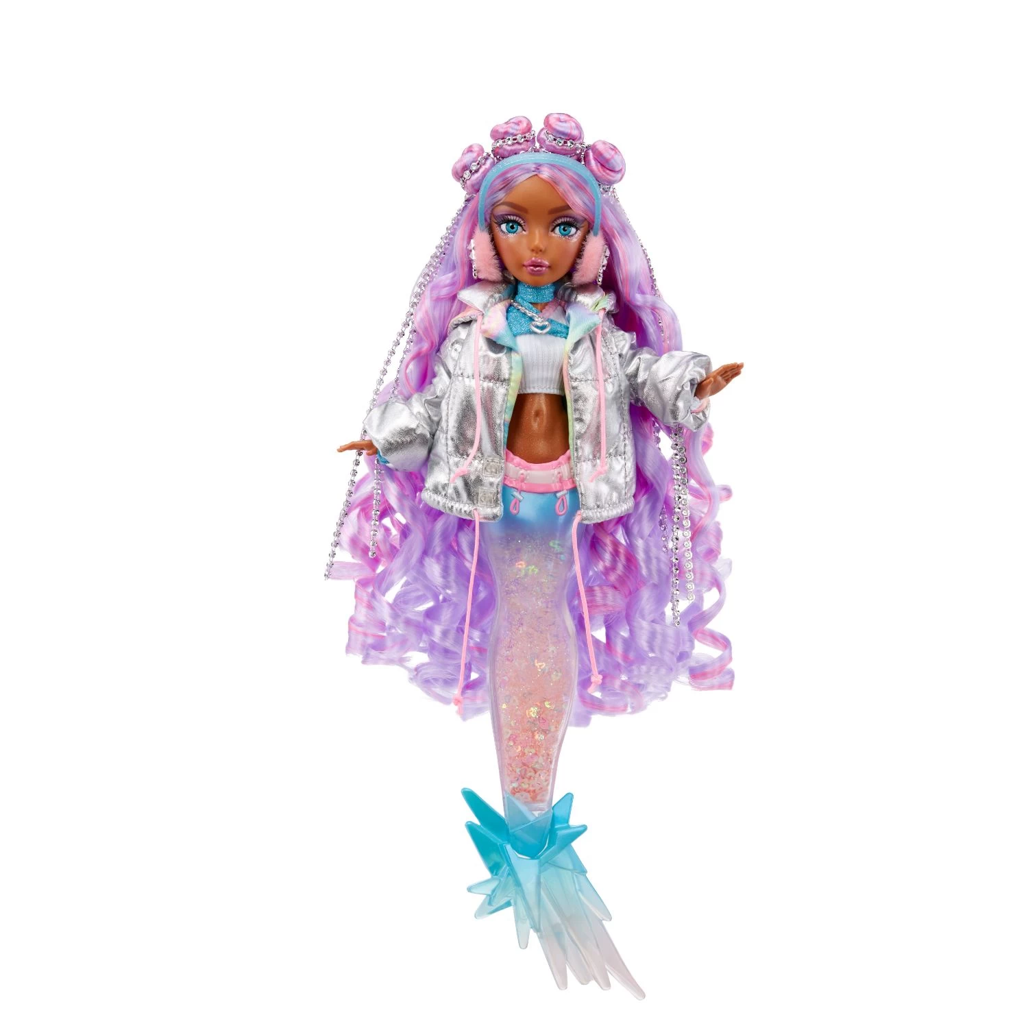 – MERMAZING MODE EN ACCESSOIRES MET WINTERTHEMA: Harmonique™ draagt een asymmetrische korte top en een aan twee kanten draagbaar, metallic, gewatteerd jack. Haar accessoires zijn oorwarmers, een schakelketting met hartje, 2 paar oorbellen en een hartvormige rugzak