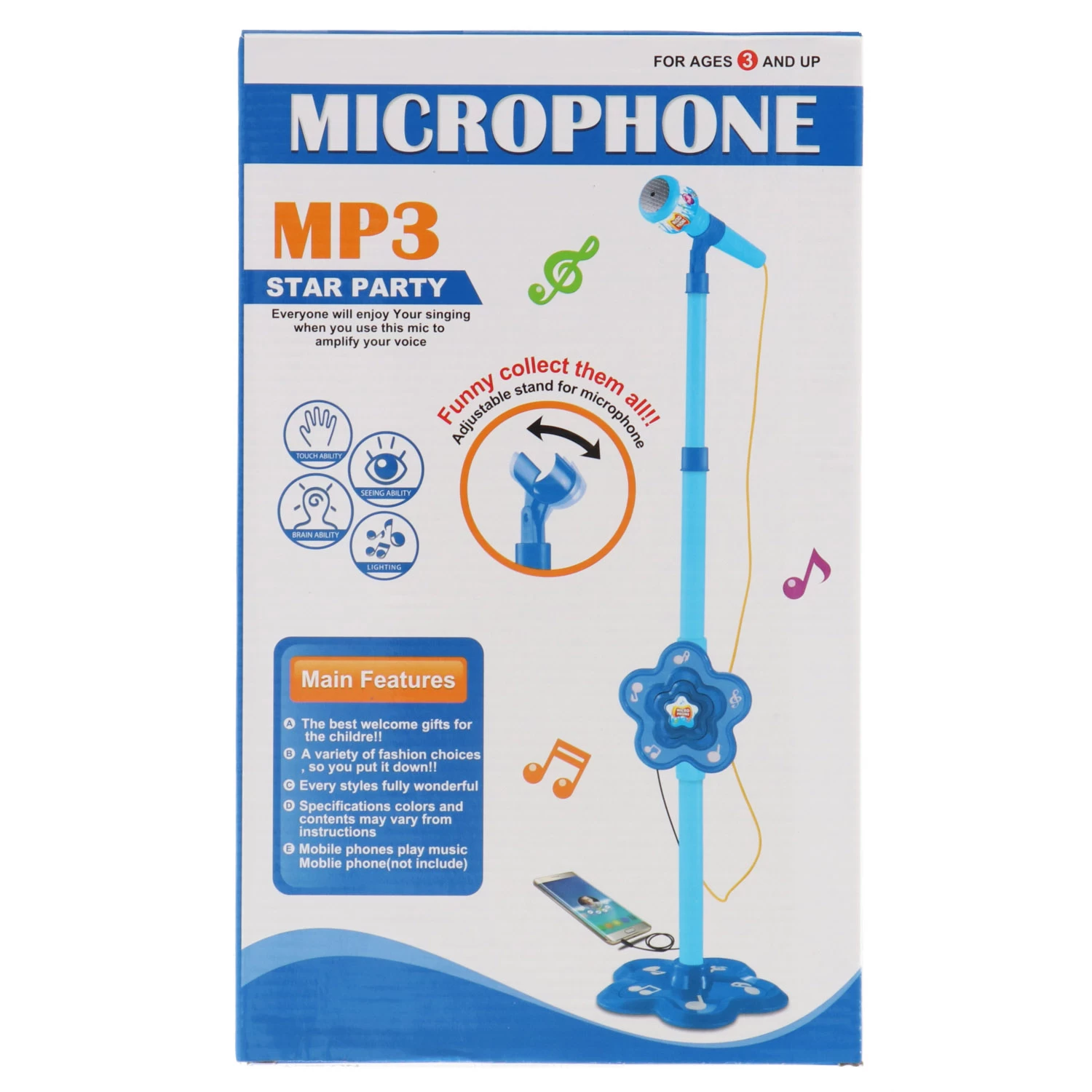 Microfoon Karaoke Blauw. Speelgoed microfoon voor het versterken van je stem. Sluit een mobiele telefoon aan om muziek af te spelen en mee te zingen. Geschikt voor kinderen vanaf 3 jaar.
