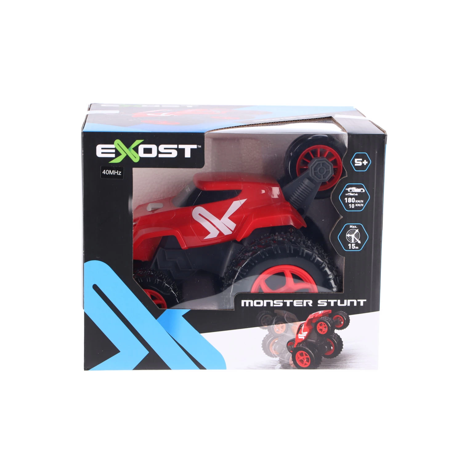 Radiografisch Bestuurbare Auto Exost Monster Stunt. Op afstand bestuurbare auto. Dankzij het derde wiel aan de achterkant kan hij ook gekanteld rijden en stunts uitvoeren. Bereik van 15 meter, snelheid van 10 km per uur. Geschikt voor kinderen vanaf 5 jaar.