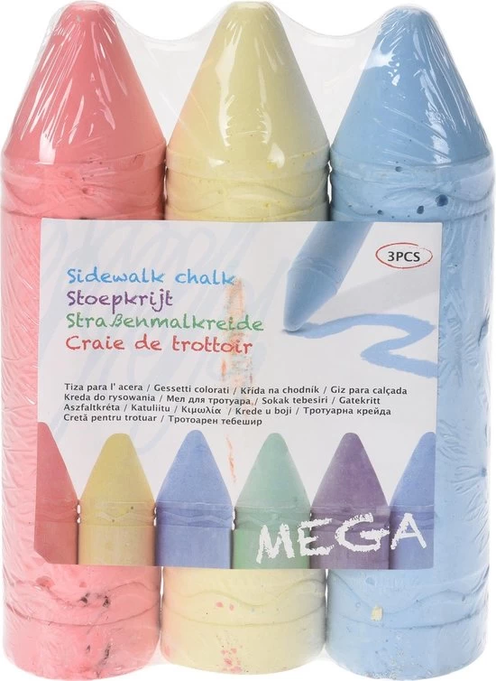 Drie stuks mega stoepkrijt! Maak de mooiste tekeningen op de stoep in voor- of achtertuin.